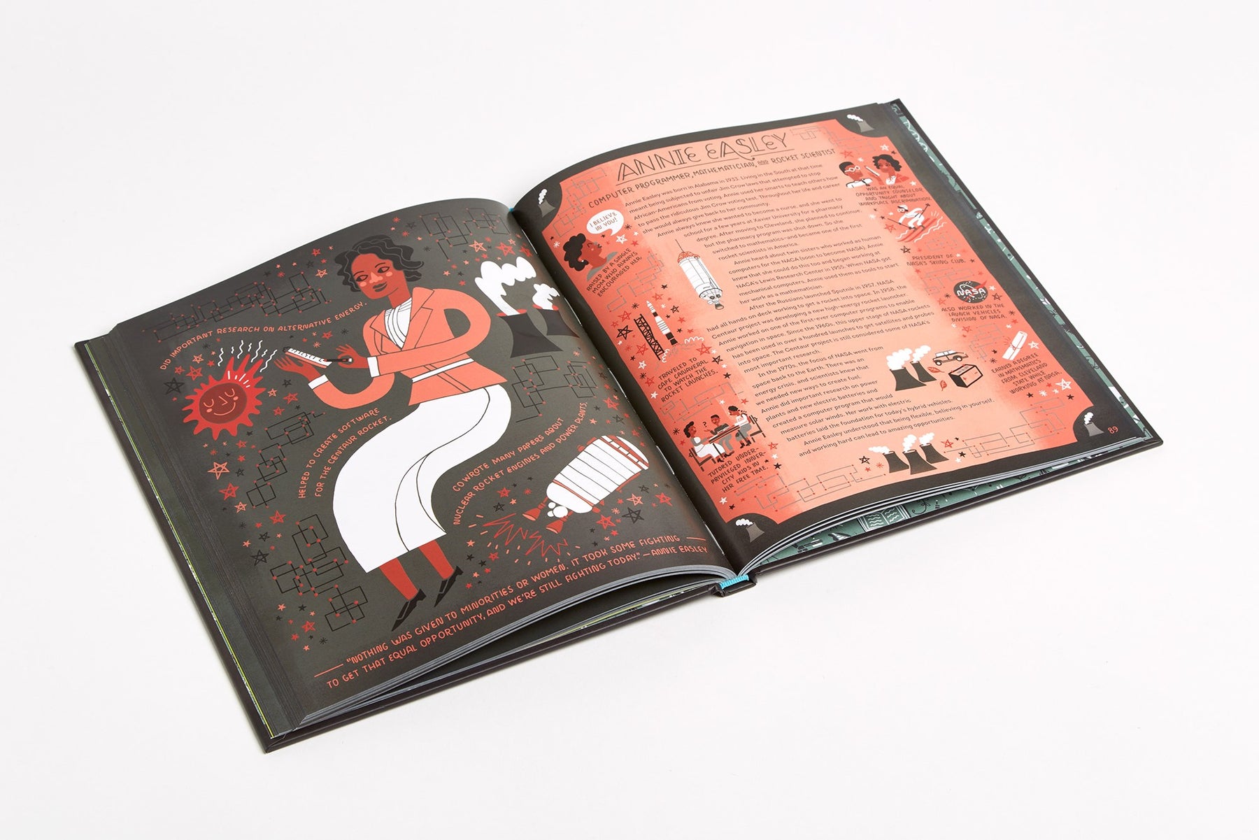 It's a scientific fact: Women rock! This fascinating, educational collection features 50 illustrated portraits of trailblazing women in STEM throughout history. Full of striking, singular art, Women in Science also contains infographics about relevant topics such as lab equipment, rates of women currently working in STEM fields, and an illustrated scientific glossary. The trailblazing women profiled include such pioneers as primatologist Jane Goodall and mathematician Katherine Johnson, who calculated the trajectory of the 1969 Apollo 11 mission to the moon.