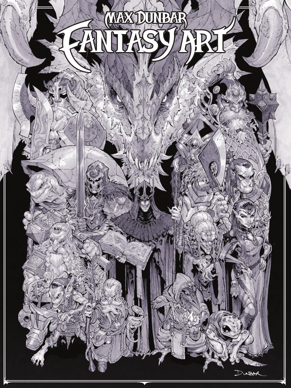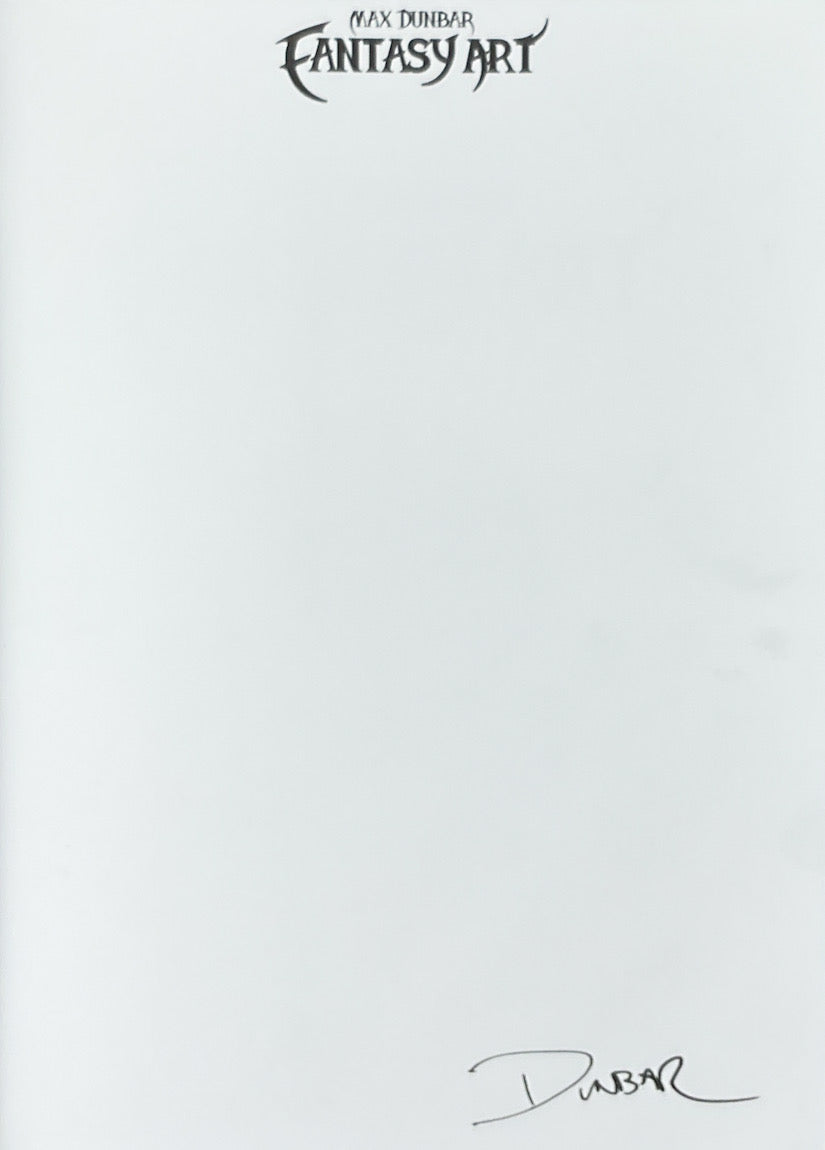 A hardcover artbook collecting illustrations and sketches of fantasy characters and creatures from comic book and concept artist Max Dunbar. Signed by the artist.