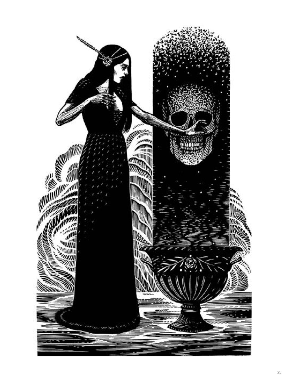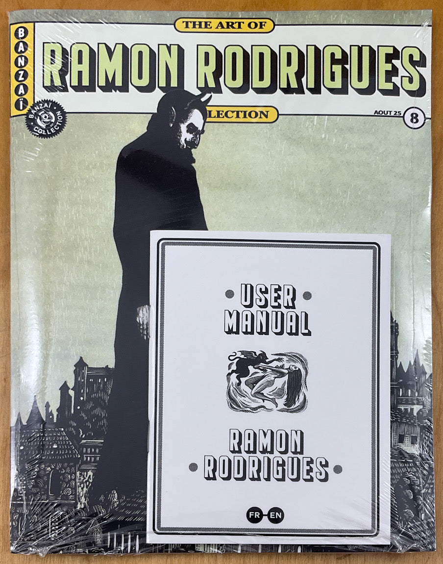 Ramon Rodrigues masters the demanding art of wood engraving like few contemporary artists. Through his compositions, he unfolds a baroque and mystical universe, rich in symbols. Drawing inspiration from both ancient engravings and Latin American popular culture, he revisits the codes of the sacred, the fable, and satire with astonishing precision. A unique body of work, blending artisanal tradition with striking modern visuals.