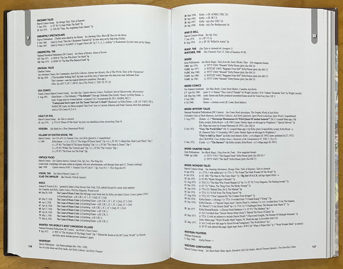 The ultimate listing of Jack "King" Kirby's work! With a decade of extensively researched corrections and additions since the 2008 "Gold Edition", this final, fully-updated, definitive Centennial Edition clocks in at DOUBLE its previous length, in a new 272-page Limited Edition Hardcover (only 1000 copies) to celebrate Kirby's Centennial! In addition to a detailed listing of all of Kirby's published comic book work (with dates, story titles, page counts, and inkers, plus reprints cross-referenced to help collectors locate less-expensive versions of key issues), it documents his work in: Pulp magazines, books, foreign editions, newspaper strips, fine art and collages, periodicals, fanzines, convention booklets, novels and short stories, essays, interviews, speeches and convention panels, art exhibitions, portfolios, posters, calendars, cards, stamps, stickers, radio and television appearances, audio and video recordings, animation--even Jack's unpublished work! If Kirby did it, it's covered here, including hundreds of new items published since his 1994 passing, bringing it up to date through his 100th birthday in August 2017!