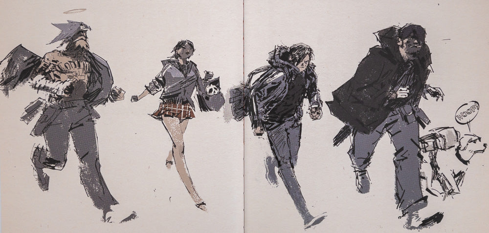 Ashley Wood's artistry in a grand 11" x 17" format! This gorgeously oversized hardcover presents the comics, posters, conceptual designs, sketches, and other beautifully rendered miscellany involving Tommy Mission and his Adventure Kartel in their battles with Zomb MD and his undead minions.