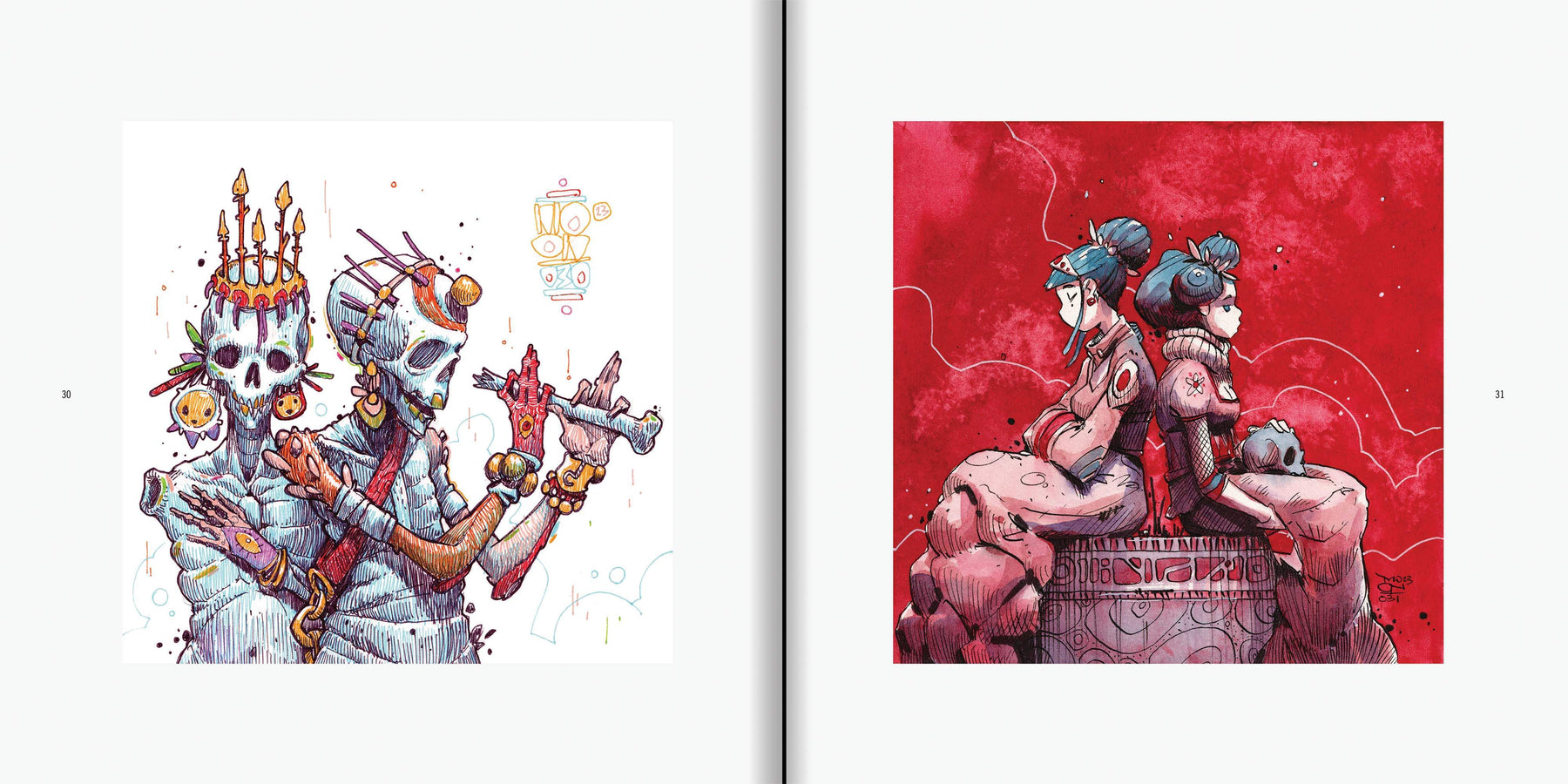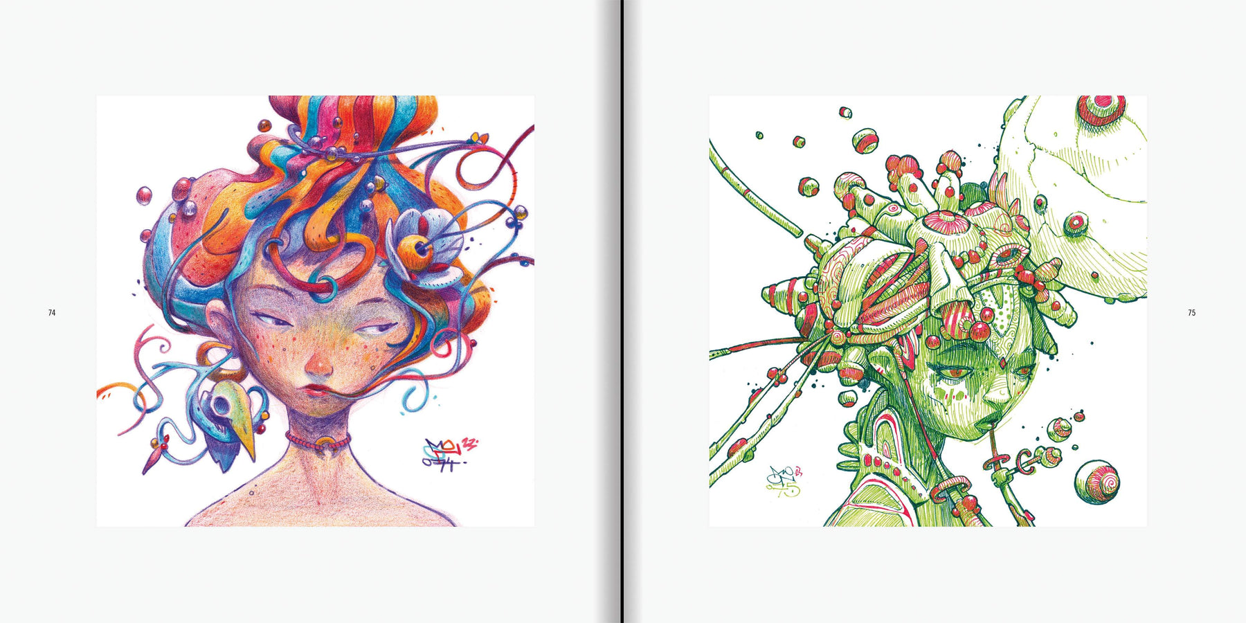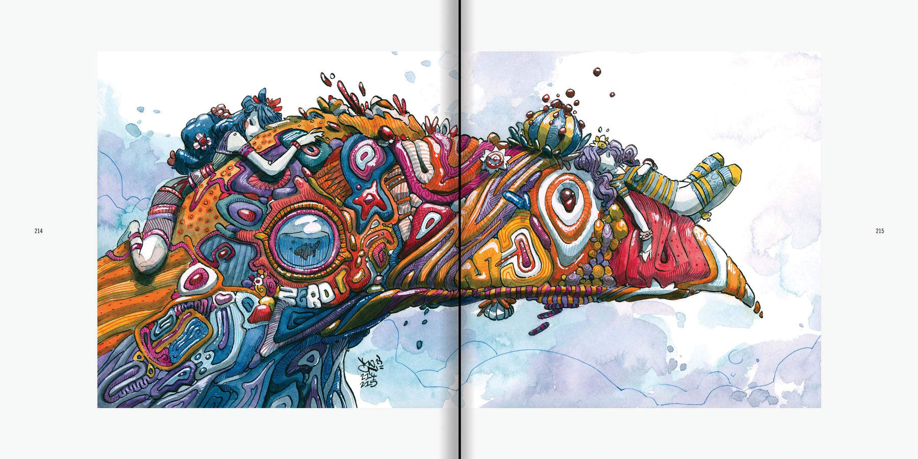 Under his pseudonym Moon, he is currently devoted to crafting his own personal universe through illustrations and paintings. His creations are mostly gathered under the moniker: "Polychröm Symbiosis", illustrating this vividly dreamlike and surreal world. Moon expresses his universe through various works of art shared on social media, in galleries via solo or group exhibitions, and of course through art books.