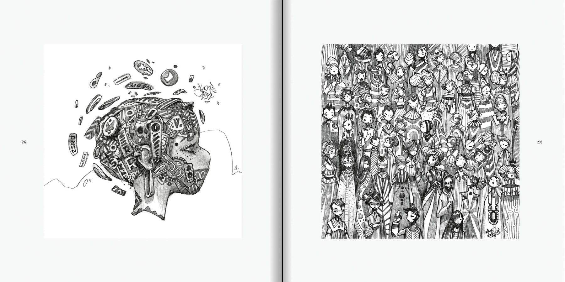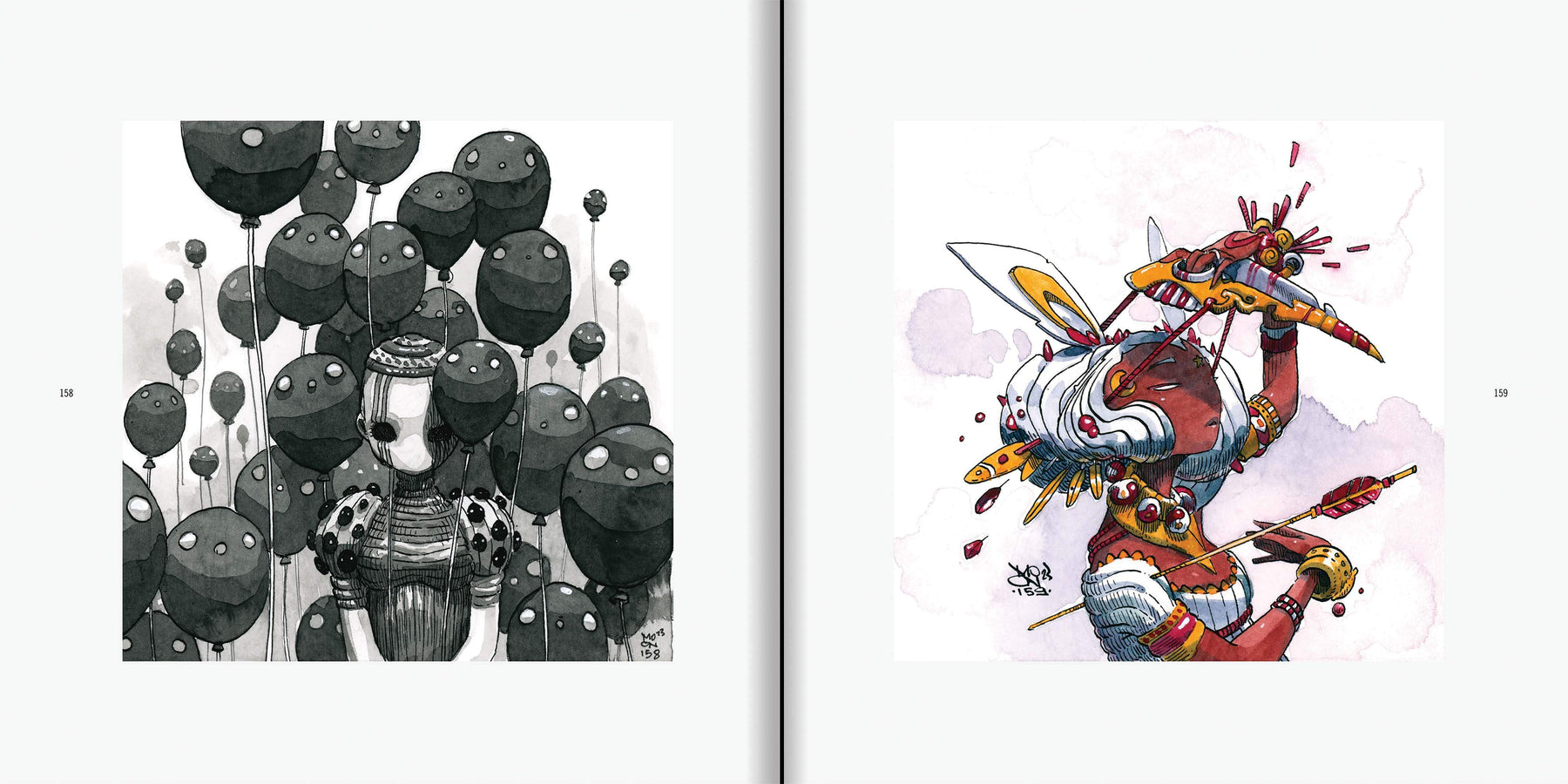 365 Squares is the manifestation of Moon's impulsive crazy project to draw every day for a year on a 15 x 15 cm square sheet of paper, using a variety of tools such as graphite, colored pencil, inks and watercolours.