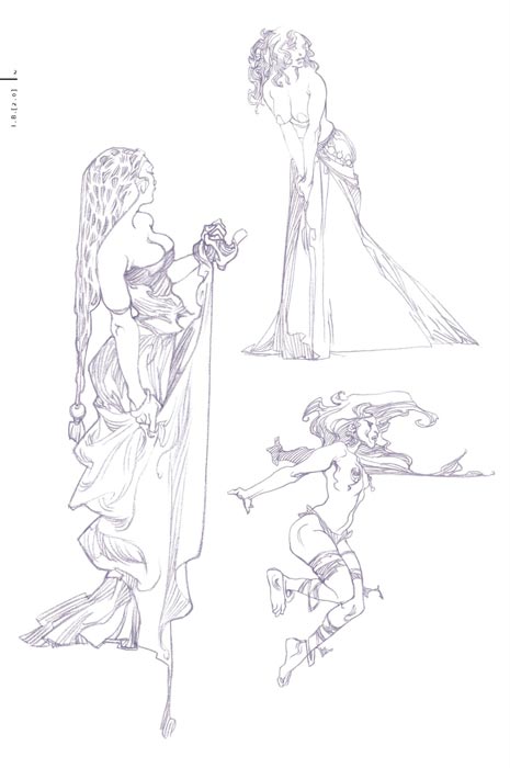 The first Iguana Bay sketchbook was published in 1996. Studies of male and female figures; big cats, horses, dogs, and other animals; imaginary creatures such as dragons, mermaids, and centaurs; and original creations from the mind of Claire Wendling.