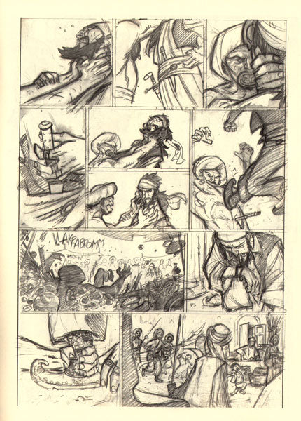The remainder of the book features sneak peeks at works in progress (Sinbad, Moby Dick, zombies) and an autobiographical comic strip of a typical workday for Pierre. Text in English.