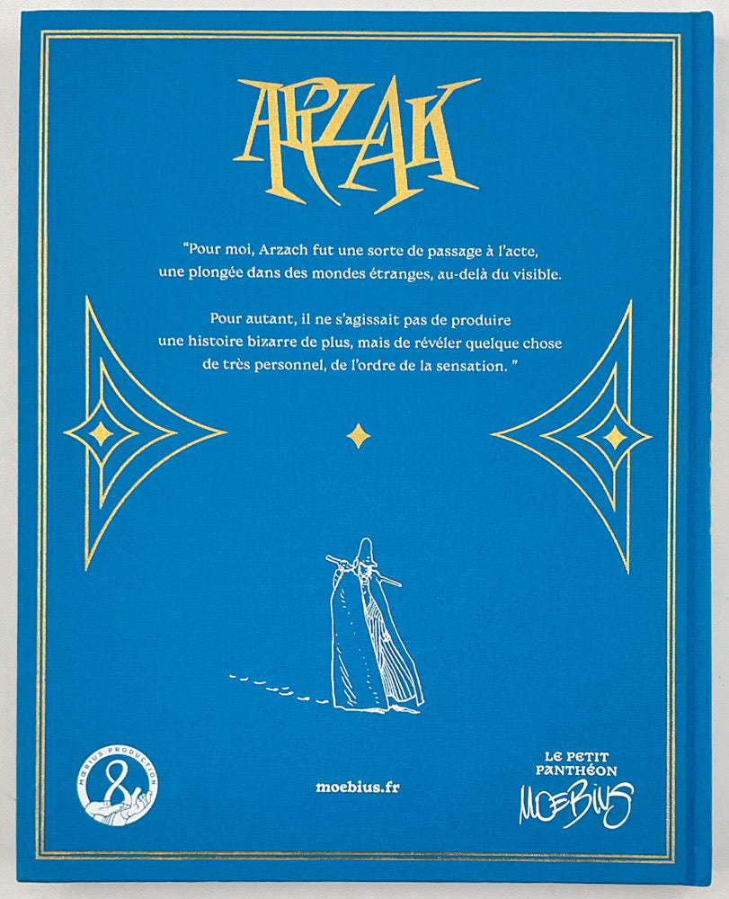 Moebius' Little Panthéon: Arzak offers an in-depth exploration of the figure with the pointed hat, an emblematic figure of the Moebiusian universe. From the Heavy Metal origins to the androgynous or spiritual representations that followed, this 8-chapter artbook is a tribute to the many facets and alternative versions of Arzak. It talks about time and space, war and peace, loneliness and multiplicity... For in over forty years of "paper" life, the bond established between Moebius and Arzak is full of complexity and depth. The character's personal mythology is linked with that of his creator, his style and personality evolving with Moebius over time. A solitary warrior, a sage of the desert or a star watcher, the very essence of Arzak does not change -- Moebius thus offers an exhilarating exercise, in search of this figure with a flying cape and piercing eyes, or of its majestic bird, in every drawing, every cartoon, every interview...