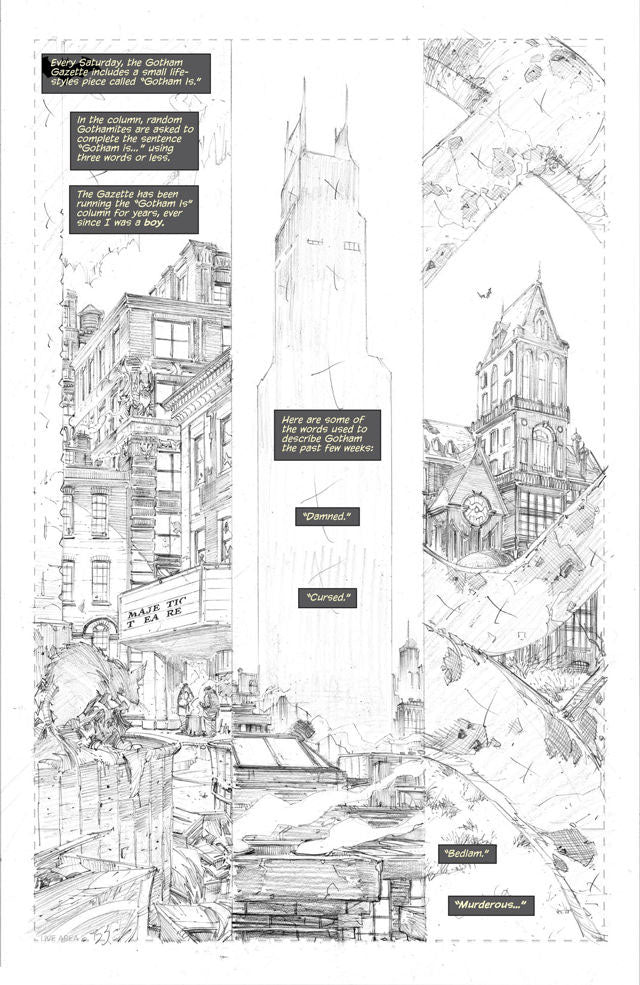 Along with writer Scott Snyder , the New York Times best-selling creative team have taken The Dark Knight to new heights. In one of the Caped Crusaders' greatest storylines to date, Capullo's pencils taking center stage. Experience the thrilling mystery behind Gotham's Court of Owls via Capullo's precise, expressive pencils, and observe a master at work.