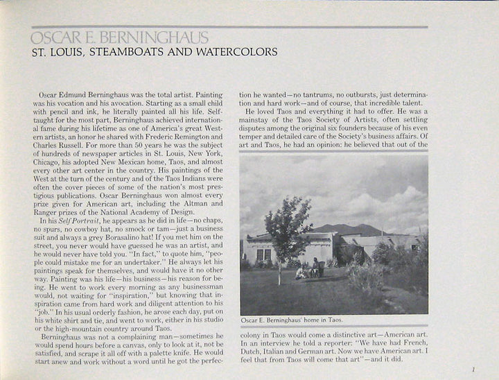 "Oscar Edmund Berninghaus was a major American painter. Born in St. Louis, Missouri, in 1874, he first came to Taos in the Territory of New Mexico in 1899.