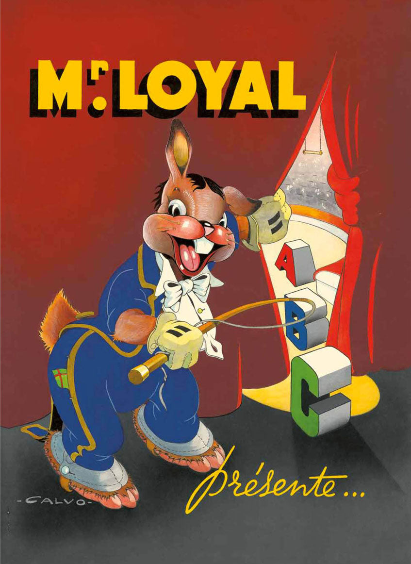 En 1946, alors à l'apogée de son talent, Calvo signe Mr Loyal présente..., un magnifique abécédaire pour enfants aux couleurs lumineuses et au trait d'une incroyable souplesse. Des animaux de cirque joyeux et débordant de vitalité y font leurs numéros pour le plus grand plaisir des lecteurs, petits et grands. Cette réédition particulièrement soignée est un fac-similé réalisé à partir des dessins originaux, excepté trois pages reproduites à partir de l'édition d'époque.