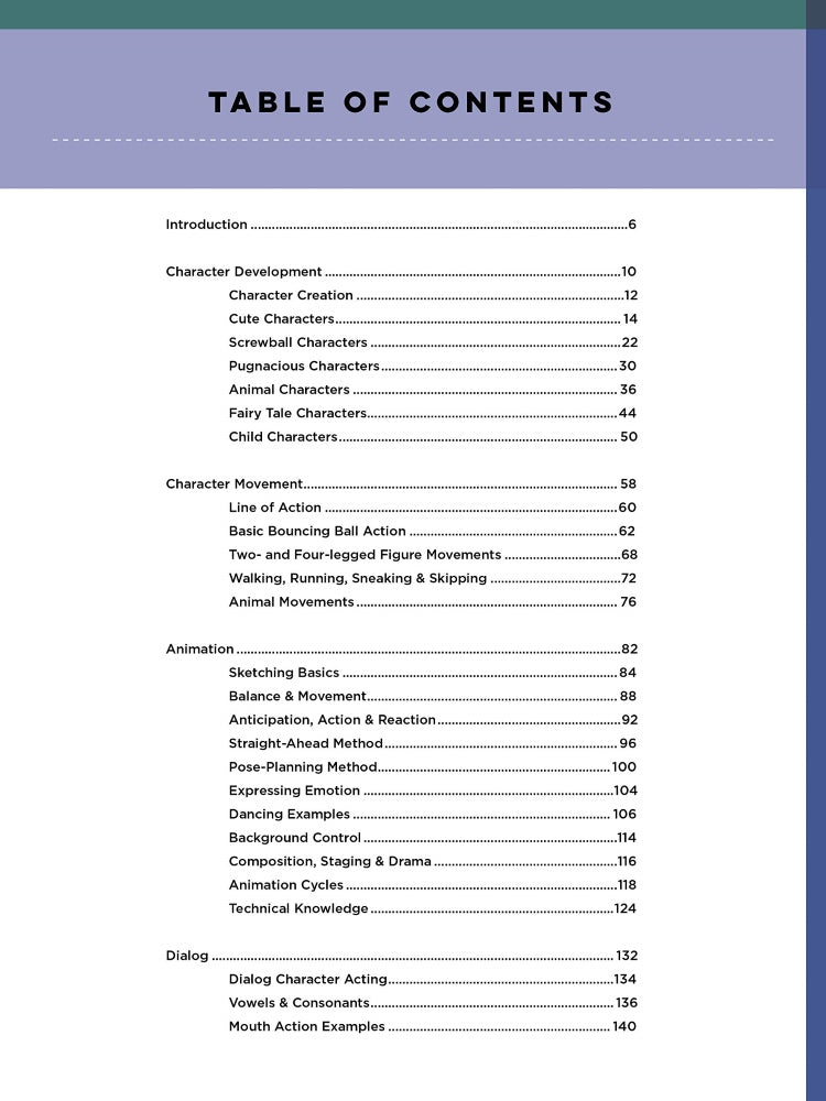 • The finer points of animating a character, including drawing key character poses and in-betweens
