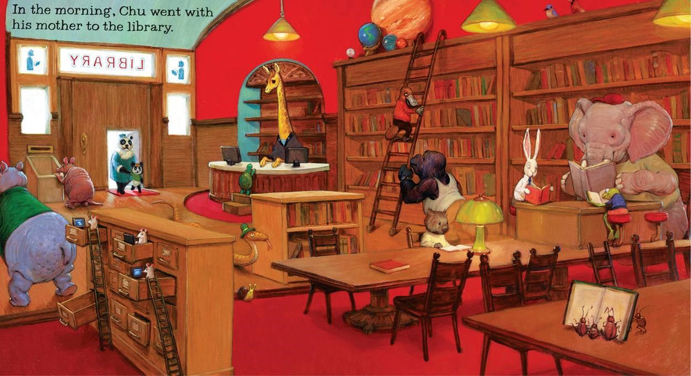 Chu is a little panda with a big sneeze. His mother takes him to the library, where it's awfully dusty. His father takes him to lunch at the diner, where there's pepper in the air. Will Chu sneeze today? And what will happen if he does?