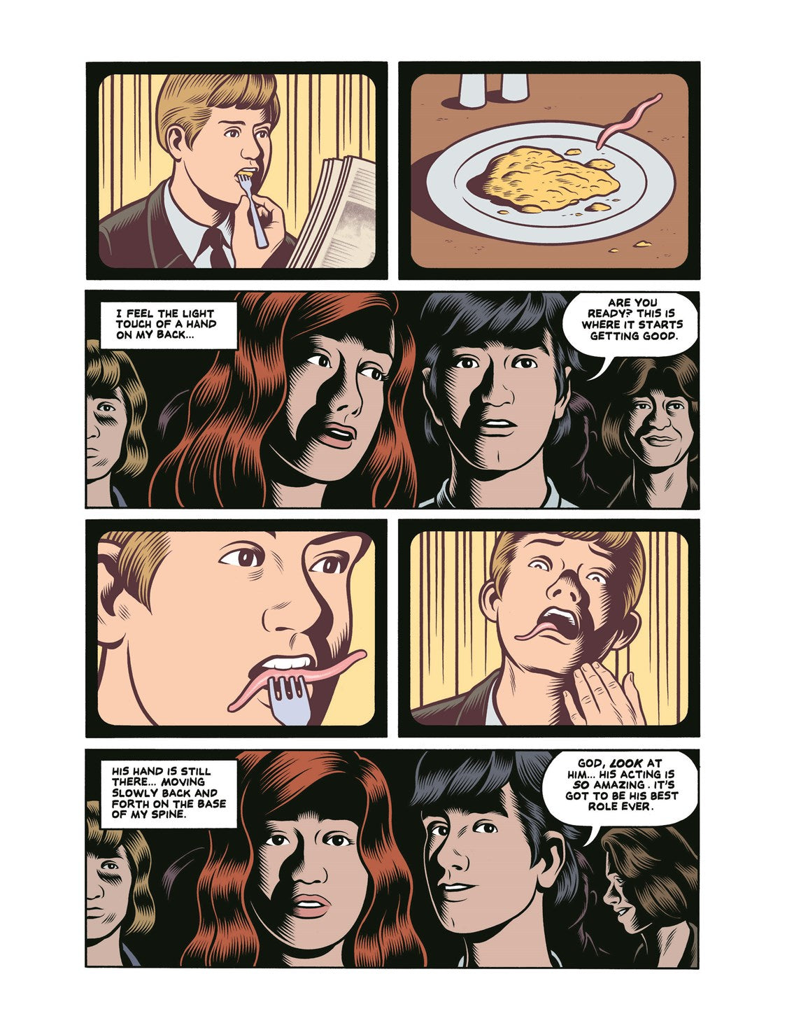 As a child, Brian and his friend Jimmy would make sci-fi films in their yards, convincing their friends to star as victims of grisly murders, smearing lipstick on the "bodies" to simulate blood. Now a talented artist and aspiring filmmaker, Brian, along with Jimmy, Jimmy's friend Tina, and Laurie--his reluctant muse--sets off to a remote cabin in the woods with an old 8 millimeter camera to make a true sci-fi horror movie, an homage to Brian's favorite movie: Invasion of the Body Snatchers. But as Brian's affections for Laurie go seemingly unreciprocated, Brian writes and draws himself into a fantasy where she is the girl of his dreams, his damsel in distress, and his savior wrapped into one. Rife with references to classic sci-fi and horror movies and filled with panels of stunning depictions of nature, film and the surreal, Burns blurs the line between Brian's dreams and reality, imagination and perception. A master of the form at his finest, Final Cut is an astonishing look at what it means to truly express oneself through art.