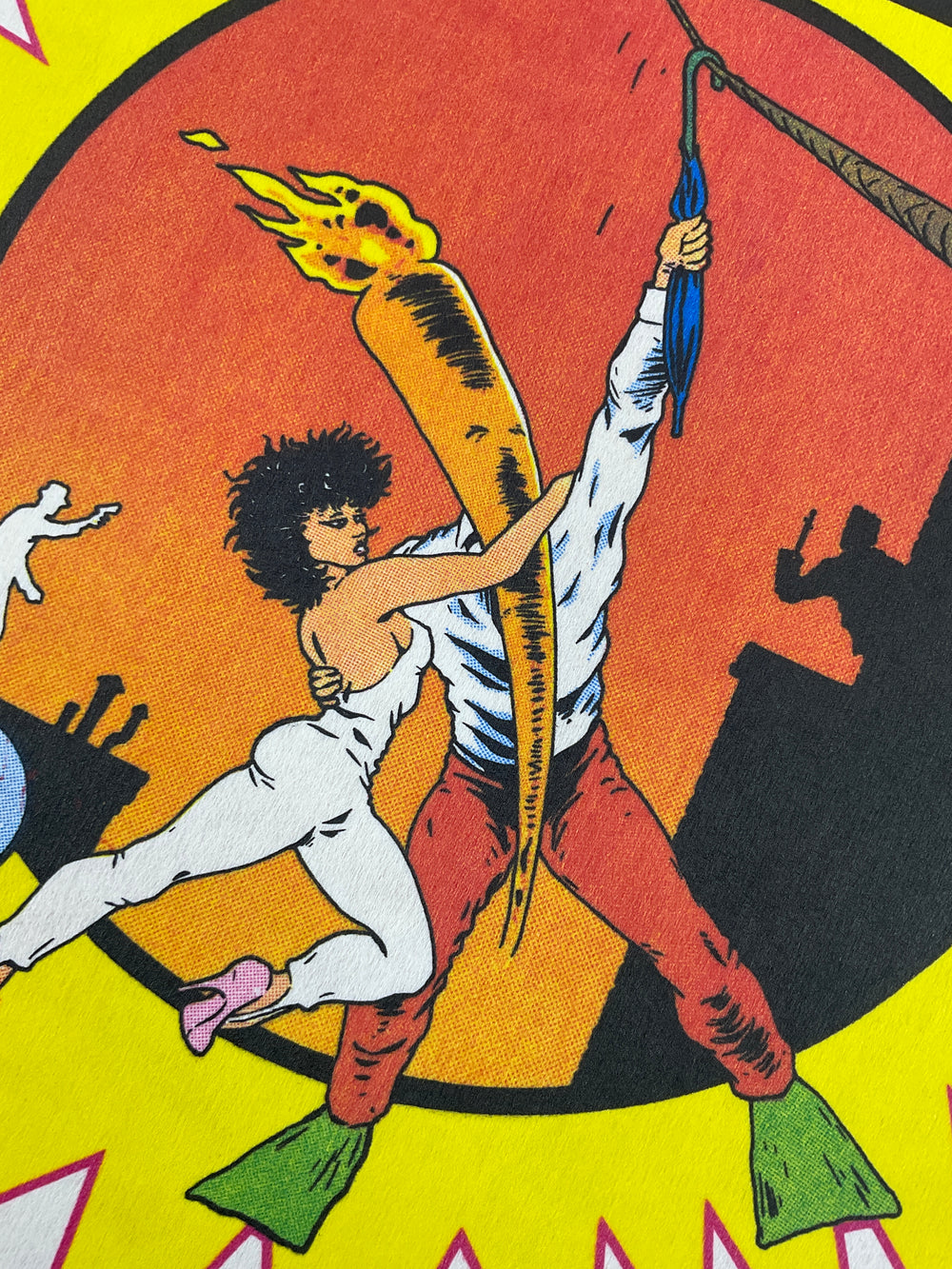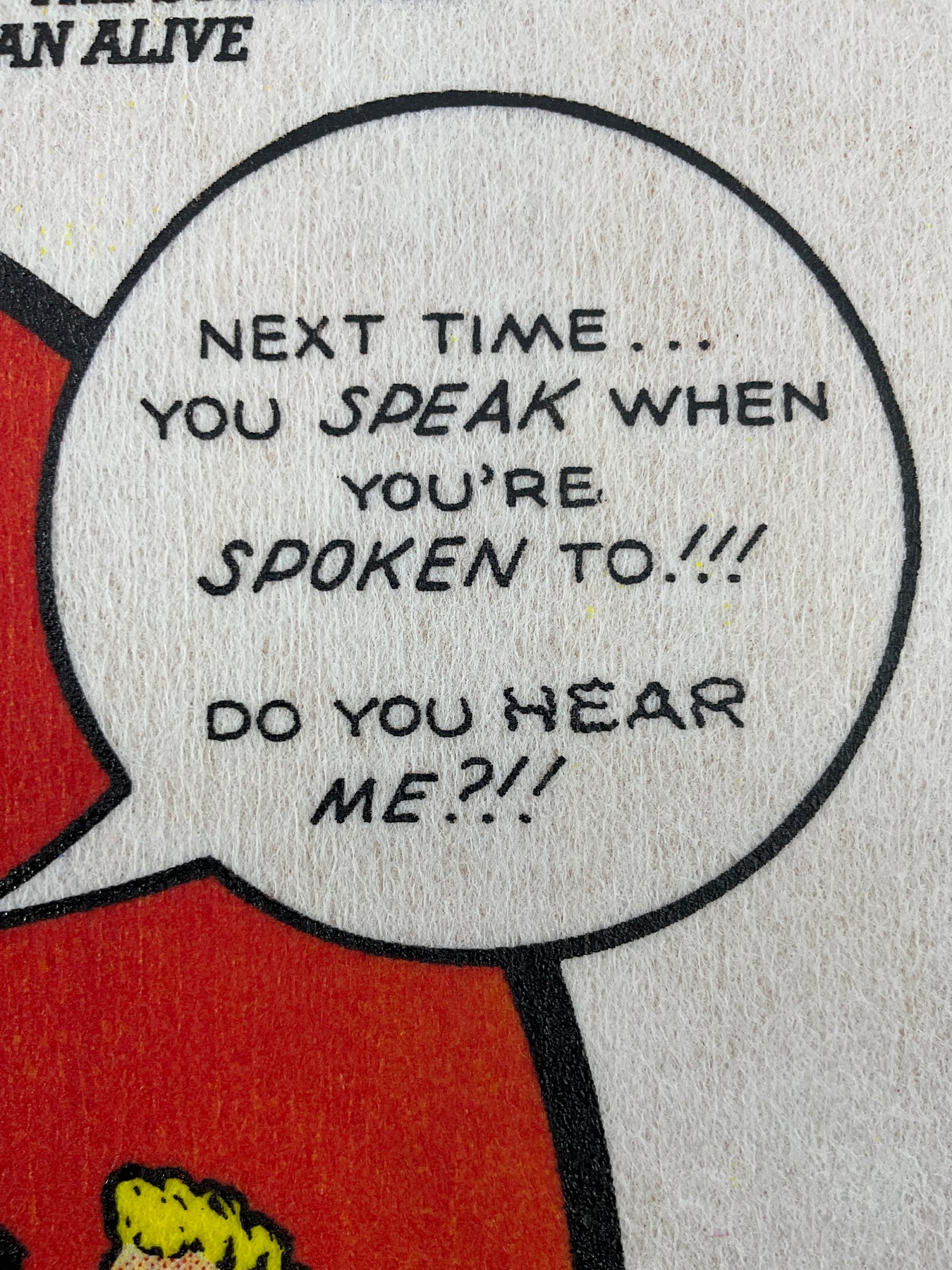 Flaming Carrot creator Bob Burden sold this and several other fabric prints at his convention appearances.