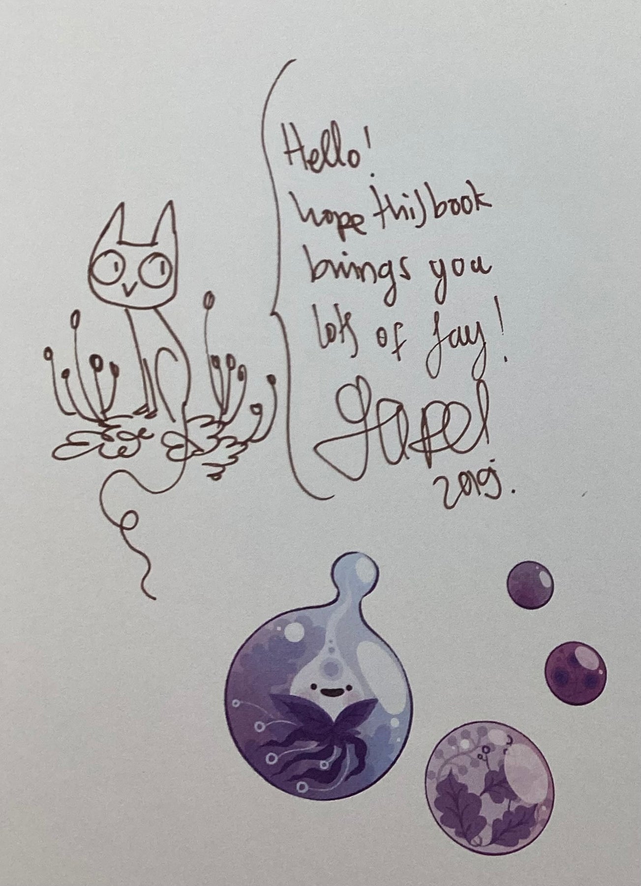 This sharp first edition has a lovely non-personalized inscription by the artist dated the year of publication: "Hello! Hope this book brings you lots of joy! Lorena 2019" and a lovely remarque drawing of a cat!