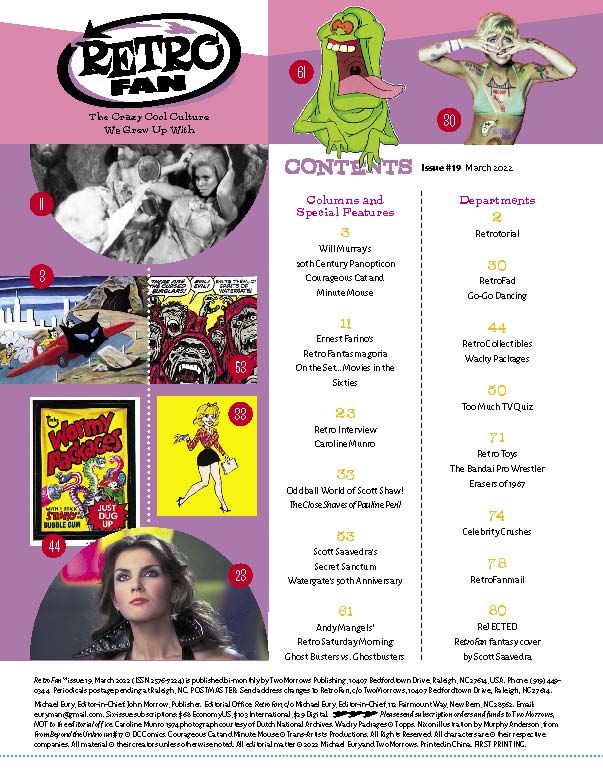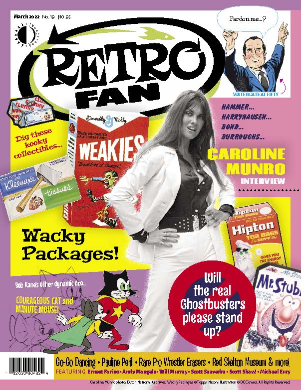 Plus: Wacky Packages, Courageous Cat and Minute Mouse, Filmation's Ghostbusters vs. the Real Ghostbusters, Bandai's rare Pro Wrestler Erasers, more behind the scenes of Sixties movies, Watergate at Fifty, Go-Go Dancing, a visit to the Red Skelton Museum, and more fun, fab features!