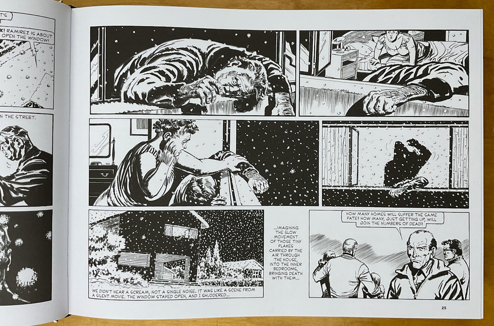 A gathering of neighbors in suburban Buenos Aires is interrupted by an eerie, phosphorescent snowfall. When those outside exposed to the "snow" start dropping dead, it becomes clear that the harmless-looking "snow" reflects the vanguard of an alien invasion, and a story of survival, cunning, and armed struggle against them unfurls. The Eternaut was written by the Argentine author Hector German Oesterheld, famous for opposing the military junta in the late ‘70s, and disappeared, along with his daughters, in 1977, and drawn by Francisco Solano Lopez in an appropriately pulpy, representational style. The story, originally serialized from 1957 to 1959, holds a mirror to Argentine politics, reflecting an era of paranoia, military juntas, and Cold War geopolitics. Encounter the gripping tale that remains a symbol of resistance in Latin America to this day.