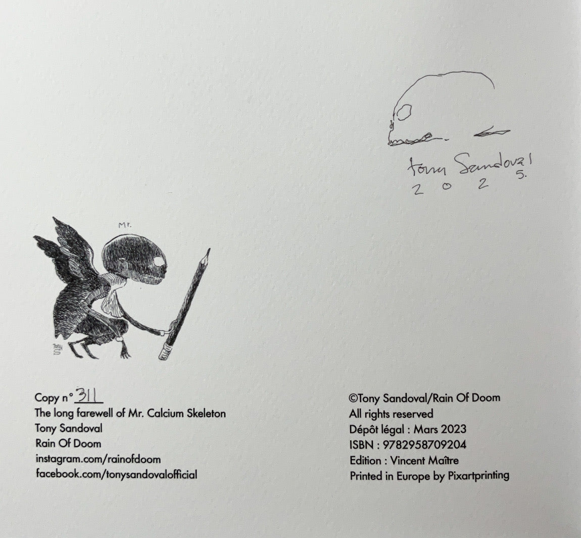 "The Long Farewell of Mr. Calcium Skeleton" is part of a series of fanzines created by Tony Sandoval. After "Mr. Calcium Skeleton was in love" and "If I was your music. "