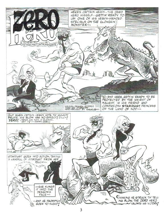 The adventures of Zero Hero and his companion Starbright appeared sporadically from 1973 to 1979 in a variety of fanzines: The Comic Buyers Guide (CBG), Rocket's Blast Comic Collector (RBCC), etc. Here, Harvey collects all the drawings and strips related to those characters accompanied by his commentary.