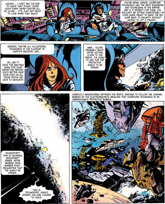 Technorog is a planet essential to the economy of the Terran empire. For 200 years, it has been a centre of industry, research and agriculture. Suddenly, the indigenous population - believed long extinct - comes back to the planet they know as Alflolol. Earth's laws are strict: They must be allowed back on their ancestral grounds. But when Valerian and Laureline are assigned to facilitate their "reinsertion," they see the difference between the letter of the law and its spirit...